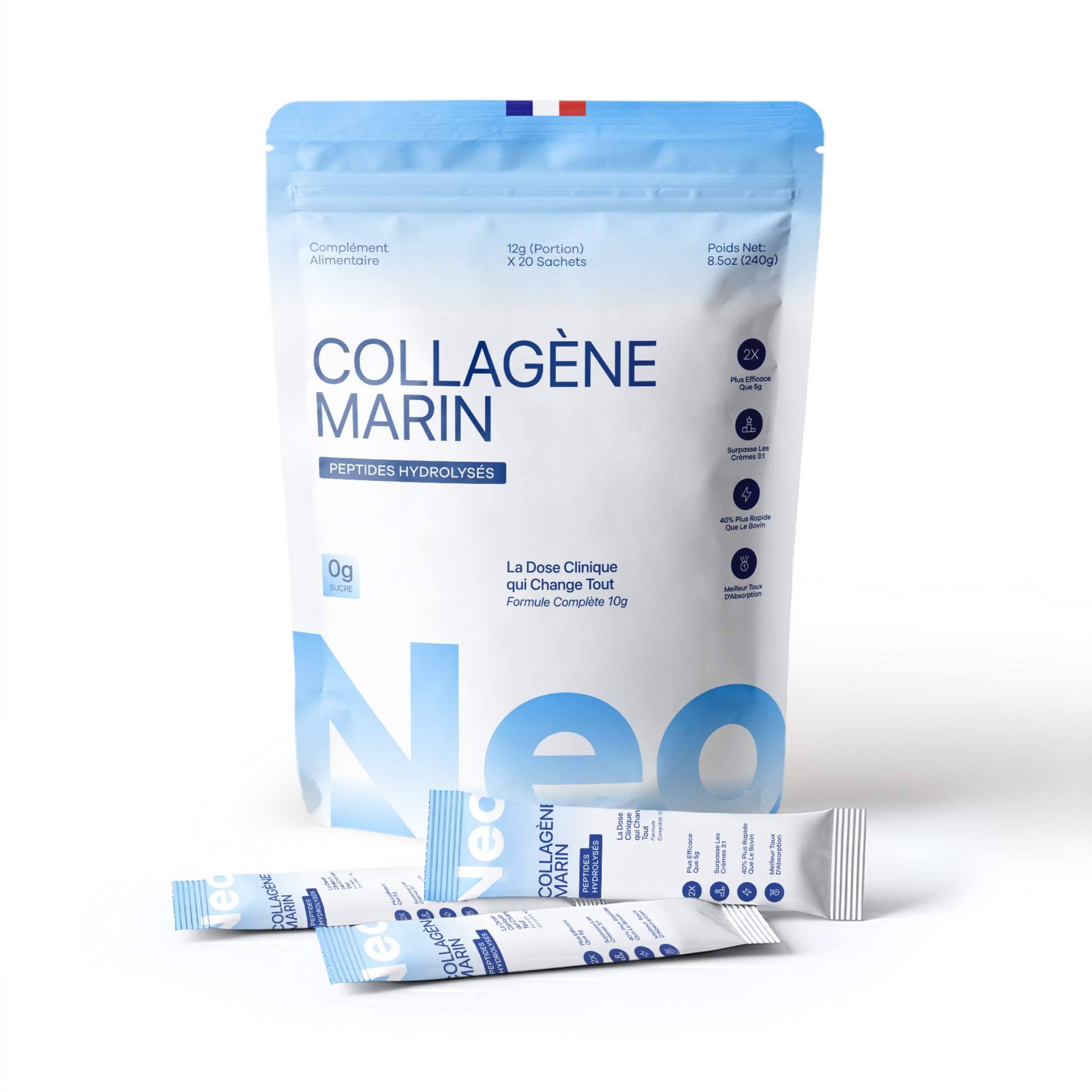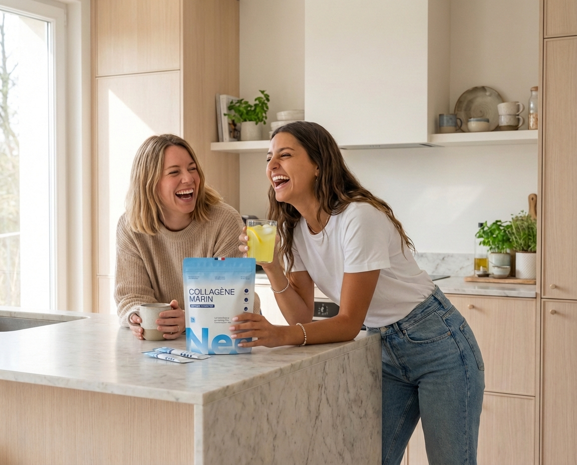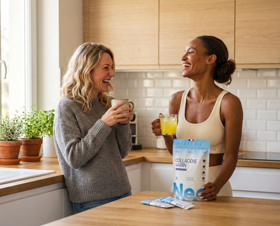 Honnêtement j'y croyais pas. J'avais déjà testé 3 marques de collagène, jamais rien. Mais là au bout de 2 semaines ma peau était plus hydratée, mon teint plus lumineux, et mes tiraillements du matin avaient disparu. À 3 mois mes ridules se sont estompées. Mon seul regret c'est de pas avoir commencé plus tôt." —Sandrine L.